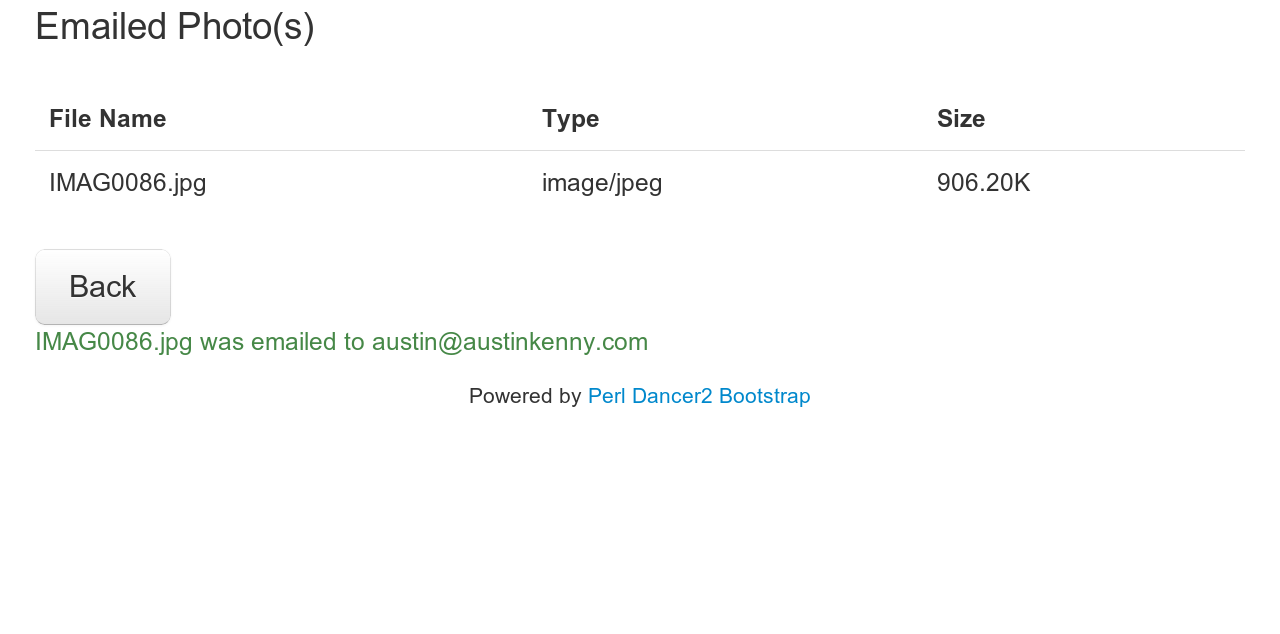 photo will be emailed to a user inputted email address using Dancer2. It will take